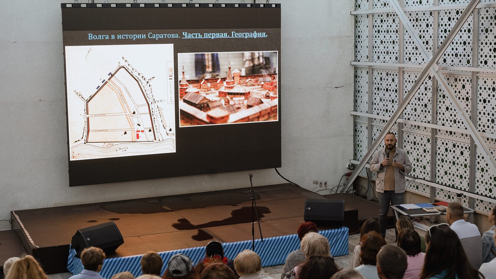 Экскурсовод Дмитрий Эйрих рассказал жителям и гостям города об истории Саратова которая тесно связанна с Великой рекой Волгой.